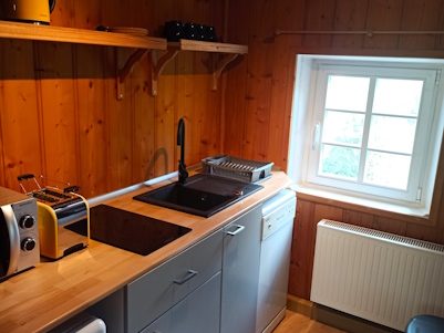 - gut ausgestattete Küche ( Kühlschrank, Geschirrspüler, Kochfeld, Mikrowelle, Kaffeemaschine, Wasserkocher, Toaster) und direkt angrenzender Essbereich