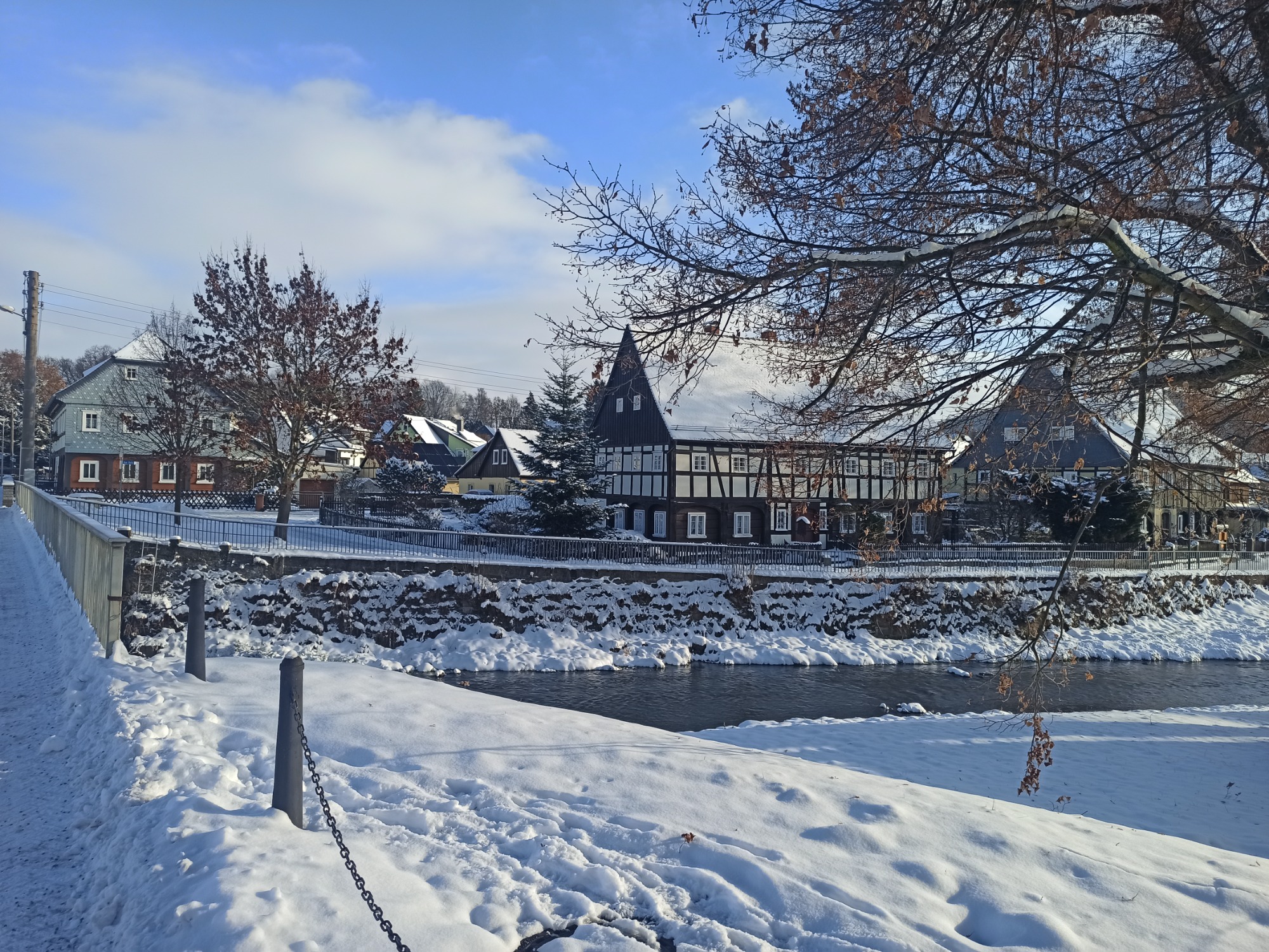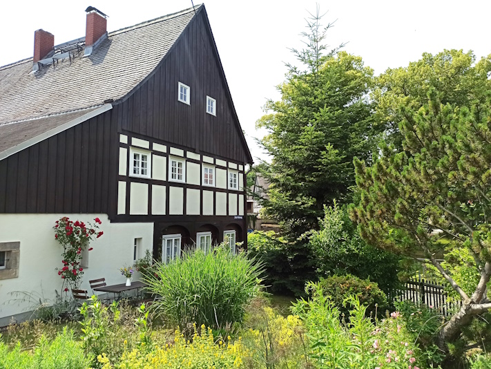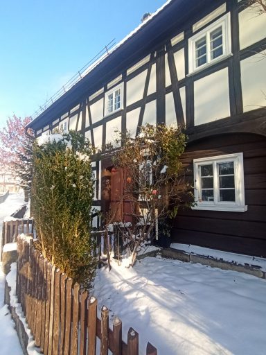 Urlaub im Umgebindehaus, wie wär´s? Wir bieten Ihnen zwei gemütlich und komfortabel eingerichtete Ferienwohnungen mit jeweils etwa 100m² Größe, verbunden durch eine Tür im Erdgeschoss. Somit kann das Haus auch komplett gemietet werden und bietet dann Platz für bis zu 12 Personen. Unseren Gästen stehen zwei Parkplätze am Haus, zwei separate Sitzbereiche im Garten und ein kleiner Kräutergarten zur Verfügung. Unser Ferienhaus Grußschinner Häus´l wurde im Jahre 1837 errichtet, idyllisch gelegen am Ufer des kleinen Flüßchens Mandau im Textildorf Großschönau, mitten im Naturpark Zittauer Gebirge und nahe des Dreiländerecks Deutschland/Polen/Tschechien. Egal ob zu Fuss, auf dem Rad oder im Winter auf Ski und Schlitten - vieles ist hier möglich. Sie können den Gipfel der Lausche erklimmen, dem Rübezahl-Radweg folgen, durch die sehenswerte Altstadt von Zittau schlendern oder in den interessanten Großschönauer Museen stöbern. Im Sommer laden gepflegte Freibäder in der Umgebung zum Entspannen und Erfrischen ein, im Winter geht´s auf die Piste am Lauschehang oder zum Langlauf in kilometerlange Loipen. Wir freuen uns auf Ihren Besuch im Grußschinner Häus´l.